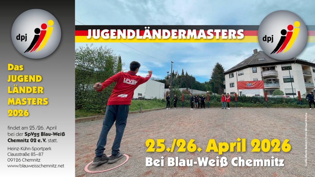 Die Deutsche Pétanque Jugend (dpj) zu Gast in Chemnitz Am kommenden Wochenende (25./26. April 2026) trifft sich die deutsche Pétanque-Nachwuchselite zum Jugendländermasters (JLM) in Chemnitz. Erstmals ist die Deutsche Pétanque Jugend (dpj)...