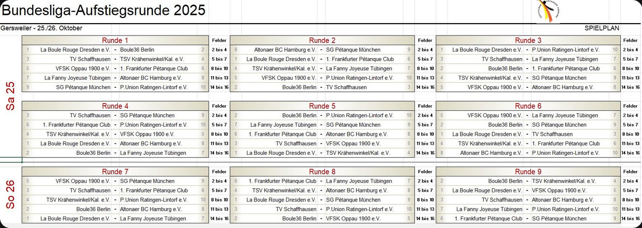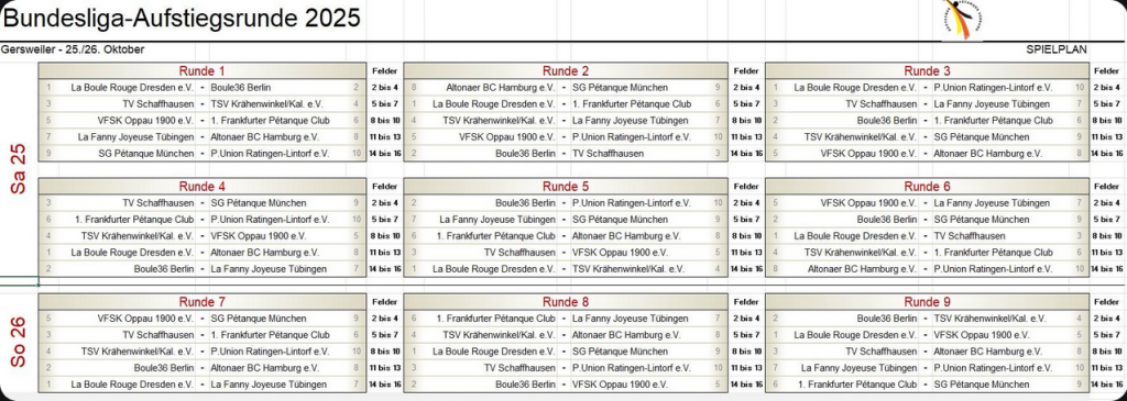 Zeitplan – Bundesliga-Aufstiegsrunde Halle Gersweiler 2025