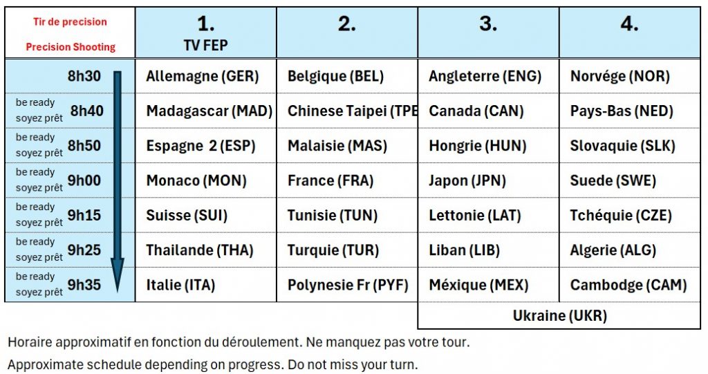 - Los geht es laut offiziellem Zeitplan um 8:30 Uhr mit dem Tir de Précision!