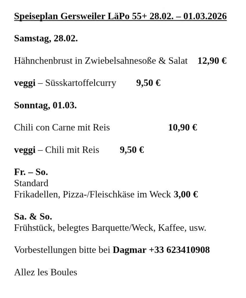 - ab 16:00 h Boulehalle geöffnet