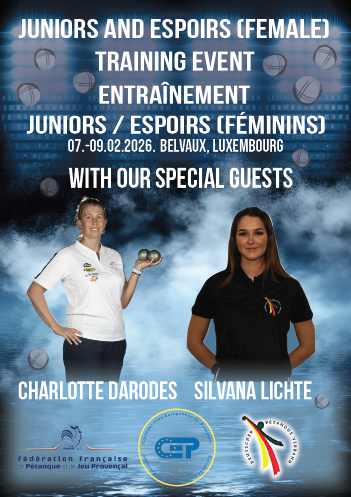 So soll vom 19. bis 21. Februar 2027 in Gersweiler (Saarland) erstmals ein vergleichbares Trainingscamp für männliche Nachwuchsspieler stattfinden. Organisiert wird die Veranstaltung mit Unterstützung des Deutschen Pétanque Verbands und mit Hilfe des Saarländischen Boule-Verbands. Weitere Details dazu sollen in Kürze bekannt gegeben werden.
